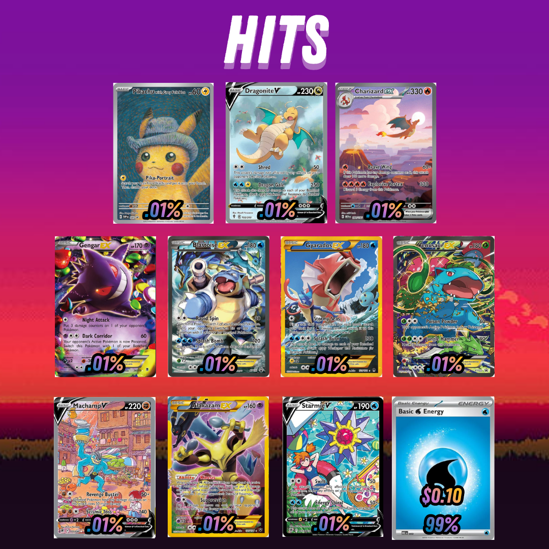 Each digital pack contains 1 single Pokémon card. All hits listed in picture and below.